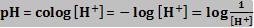Sörensen definiu o potencial hidrogeniônico (pH) como o cologaritmo da concentração hidrogeniônica em mol/L, ou logaritmo negativo da concentração de H+, ou logaritmo do inverso da concentração de H+.