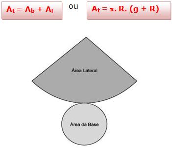 Área total Redação 14 anos atrás Área total Para calcularmos a área total de cone circular reto de raio R e geratriz g, temos: Pela Web