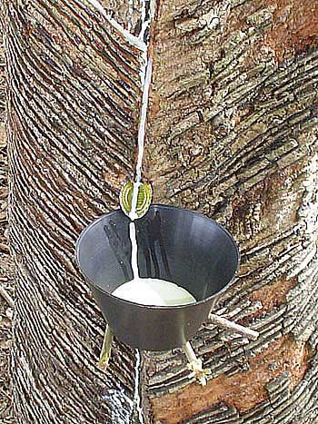 Látex, extraído da seringueira, é uma suspensão aquosa de poliisopreno.
