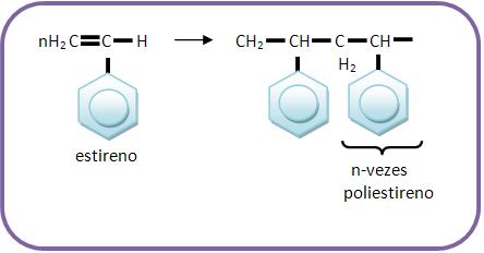 Quando aquece o vinilbenzeno (estireno), na presença de catalisadores, a dupla ligação é rompida, onde cada molécula fica pronta para combinar com outras duas: