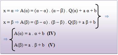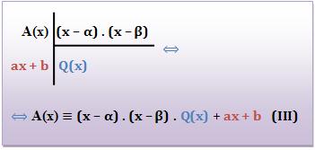 2) Sabemos que gr(B) = 2, portanto o resto da divisão de A por (x – α) . (x – β) é do tipo R(x) = ax + b.