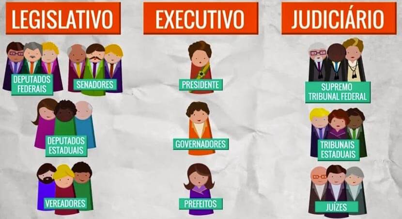 - Judiciário (o poder de julgar quem não cumpre as leis), que cabe aos tribunais.