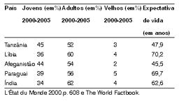 ESTRUTURA ETÁRIA E EXPECTATIVA DE VIDA EM ALGUNS PAÍSES