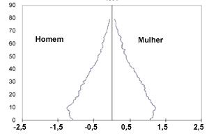 Pirâmide de Idade: representação gráfica da composição da população de um lugar em função da idade e do sexo, em um ano determinado.