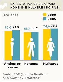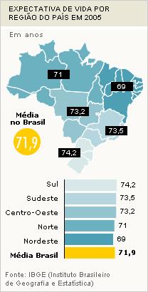 A expectativa de vida do brasileiro, hoje, já ultrapassou os 70 anos de idade (IBGE, dezembro de 2003), o que corresponde à média mundial.
