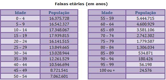 A pirâmide de idade da população brasileira reflete a dinâmica populacional. Assim, a redução da base da pirâmide indica a queda na taxa de natalidade e de fecundidade. Até 1980, a base da pirâmide ainda era bastante larga. Na pirâmide de 1996, percebe-se uma redução significativa do percentual de jovens que corresponde à faixa etária de 0 a 14 anos (46,5%) e um aumento percentual das pessoas adultas, de 15 a 64 anos (46,5%), e idosas, com mais de 64 anos (7,1%). O aumento significativo do percentual de idosos corresponde ao aumento da expectativa de vida. A pirâmide de idade reflete o processo de envelhecimento da população. O crescimento da população idosa exige novos investimentos do estado, principalmente no que se refere ao sistema previdenciário e ao atendimento médico e social.