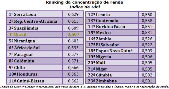 A Eslováquia possui a menor concentração de renda, com índice de 0,195.