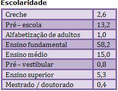 No geral, as mulheres são mais escolarizadas do que os homens no Brasil. A Região Sul é a que apresenta o maior índice de escolaridade, com um patamar acima de 96% entre as idades de 7 e 9 anos, contra 86% da Região Nordeste apresentam.