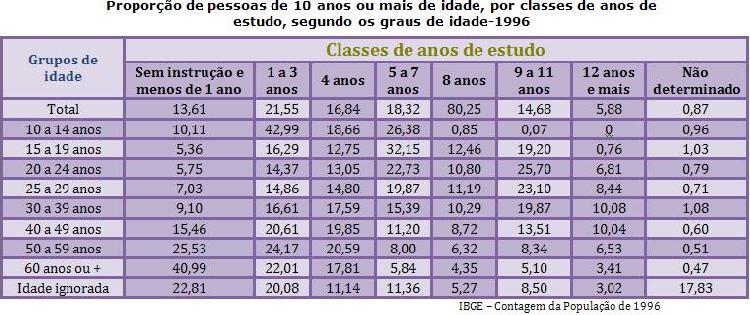A educação da população brasileira apresentou um importante progresso que pode ser verificado através da grande queda do número de indivíduos com menos de um ano de escolaridade.