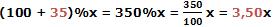 b) efetuar o aumento de um valor x de 35% é o mesmo que multiplicar este valor por 3,50, pois: