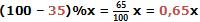 b) Descontar um valor x de 35% é o mesmo que multiplicar este valor por 0,65, pois: