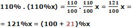 a) fazer dois aumentos sucessivos de 10% é o mesmo que fazer apenas um aumento de 21%, pois: