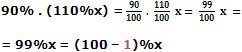 c) fazer um aumento de 10%, e em seguida um desconto de 10%, é o mesmo que fazer apenas um desconto de 1%, pois: