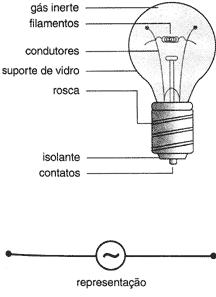 Consta de um fio de tungstênio em forma de espiral, chamado filamento, colocado dentro de um bulbo, que encerra um gás inerte, para evitar a oxidação.