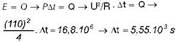 Considerando que toda energia elétrica consumida pelo resistor é transformada em calor, temos:
