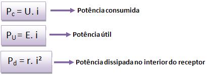 Imagine um receptor, com uma força eletromotriz E e resistência interna r, que está sob uma tensão elétrica U, que é percorrido por uma corrente elétrica com uma intensidade i, vejamos: