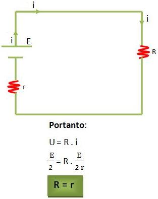 Vejamos agora outra situação: Caso o gerador esteja ligado a um resistor de resistência R, dentro das condições da potência máxima temos: