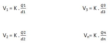 2- Já o potencial resultante no ponto P é descoberto através da soma algébrica de todos os potenciais parciais, portanto: