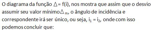 Desvio mínimo Por Redação01/06/2012 às 10:51 Desvio mínimo “Para que o desvio experimentado por um raio de luz, ao atravessar um prisma, seja mínimo, o ângulo de incidência deve ser igual ao de emergência”.