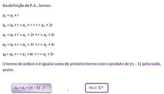 Termo geral de uma P.A Por Redação31/05/2012 às 17:47 6 – Termo geral de uma P.A. Se (an) é uma P.A. com primeiro termo a1 e razão r.