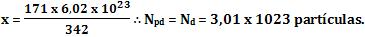 Vamos determinar o número de partículas dispersas, ao dissolver 171g de sacarose em 1 litro de água.