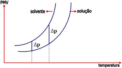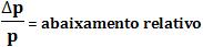 O quociente entre o abaixamento da pressão máxima de vapor (∆p) e a pressão máxima de vapor do solvente puro (p) é chamado de abaixamento relativo da pressão máxima de vapor.