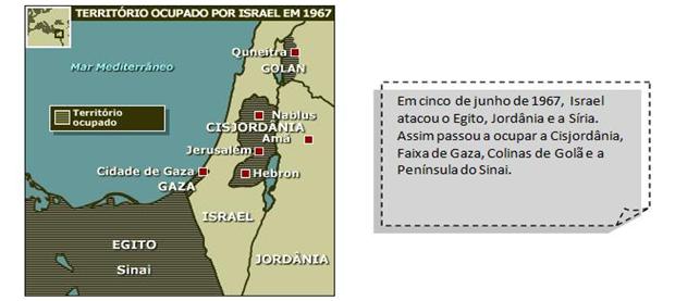 O restante do território Palestino condiz à Faixa de Gaza e a Cisjordânia que estavam ocupadas respectivamente pelas tropas armadas do Egito e da Jordânia.