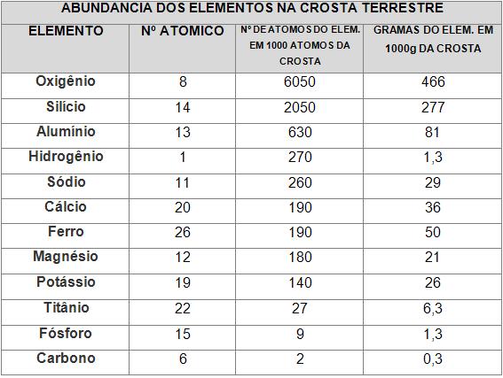 Observe a tabela sobre os elementos na crosta terrestre