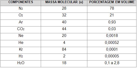 Os gases mais abundantes na atmosfera terrestre