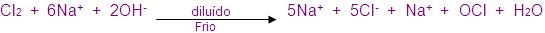 Ocorre reação no cloro com bases fortes, a frio ocorre produção de cloreto e hipoclorito.