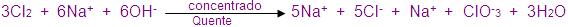 A quente formam-se íons cloreto e clorato: