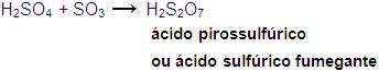 O ácido sulfúrico fumegante ou óleum é formado pela absorção do trióxido de enxofre pelo ácido sulfúrico.