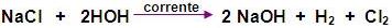 – obtenção do gás cloro, gás hidrogênio e da soda cáustica por eletrólise de sua solução aquosa.