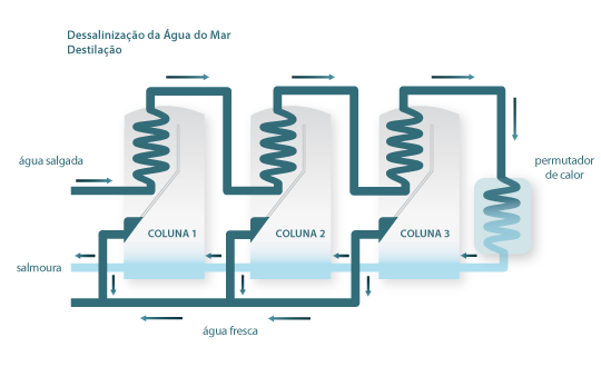 A água salgada passa por membranas de fibra oca que contém poros microscópicos e todo sal e impurezas que estão nessa água, ficam retidos nesses poros. Hoje, por ano mais de 4,8 bilhões de metros cúbicos de água salgada passam a ser doce.