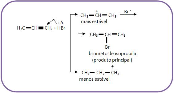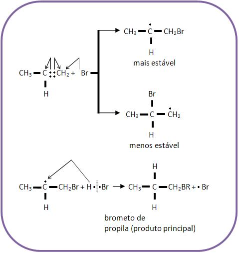 Vejamos a adição de HBr ao propeno.