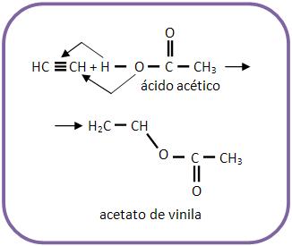 O acrilonitrilo é muito importante na fabricação de plásticos. Outra adição importante é a reação de acetileno junto com um ácido acético estabelecendo o acetato de vinila, muito usado na fabricação do polímero de polivinila.