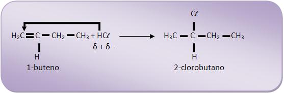 “Nas reações de adição, a porção positiva a adicionar (geralmente H) dirige-se par o carbono mais hidrogenado da insaturação.”