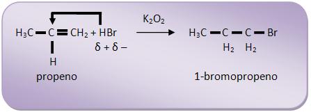 “Na presença de peróxido (O2)2-, ocorre inversão da regra de Markovnikov”.