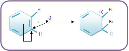 b) O íon Br+ para formar um íon carbônico, deve atacar o benzeno, apresentando com carga positiva um carbono trivalente.