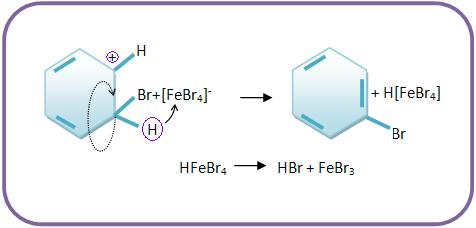 Porém quando se coloca o brometo férrico como catalisador, a reação se formará através do desprendimento de brometo de hidrogênio e com a formação de bromo-benzeno.