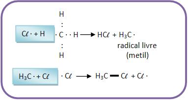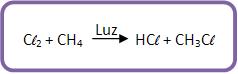 É uma reação de substituição através do radical livre, uma reação de substituição que ocorre entre alcanos e halogênios.