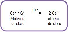 As absorções da luz pelas moléculas de cloro causam a decomposição das moléculas, formando átomos de cloro. Ocorrem então as reações em cadeia, onde muitas moléculas de cloreto de metila e cloreto de hidrogênio são formadas para cada molécula de cloreto que sofre fotólise (decomposição de moléculas orgânicas através do efeito da radiação eletromagnética).