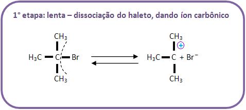 Através de um mecanismo diferente chamado SN-1 (substituição nucleofílica de primeira ordem), a hidrólise dos haletos de alcoíla terciários irá se processar.