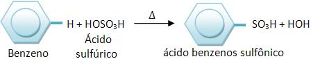 Os hidrocarbonetos aromáticos irão reagir com H2SO4 fumegante, através de um rápido aquecimento, pelas reações de substituição. Este processo apresenta formação de ácidos sulfônicos aromáticos.