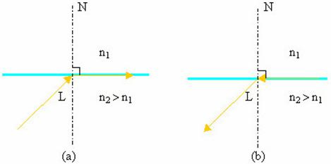 Quando o ângulo de incidência (ou de refração) for igual a 90º, o ângulo de refração (ou de incidência) será igual ao ângulo limite (L)(fig. 9).