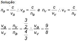 (UF–CE) O índice de refração da água é 4/3 e o do vidro é 3/2. Qual é a razão entre a velocidade da luz na água e no vidro?