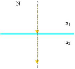 Conclusão: Quando o ângulo de incidência for nulo, o ângulo de refração também será nulo, não ocorrendo desvio do raio luminoso (fig. 8).