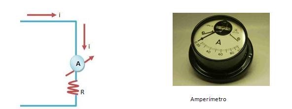 O amperímetro é um aparelho que serve para medir a intensidade da corrente elétrica. Um amperímetro perfeito é aquele que apresenta uma resistência interna nula. Ele é disposto em série com o elemento de circuito da corrente elétrica que se deseja medir.