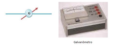 Além destes dois aparelhos que vimos acima, existe também o galvanômetro, que é utilizado para indicar a passagem da corrente ou a existência de uma ddp.