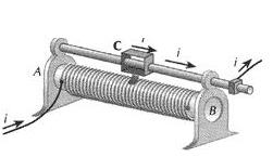 Deslocando a posição do cursor C, o comprimento do fio atravessado pela corrente elétrica varia juntamente com a resistência elétrica.